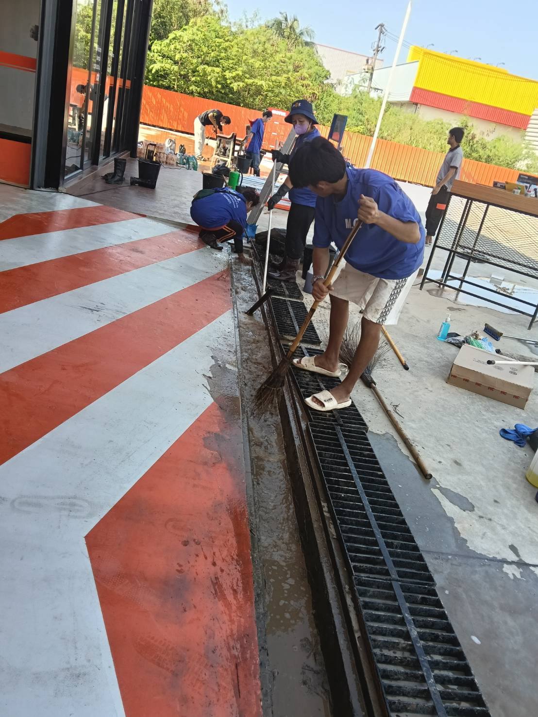ห้ามใช้น้ำปริมาณมากในพื้นที่ซ่อม เพราะอาจทำให้ลื่น
